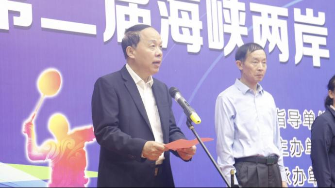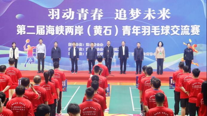湖北省人民政府台湾事务办公室主任程良胜宣布“羽动青春 追梦未来”第二届海峡两岸(黄石)青年羽毛球交流赛开幕。