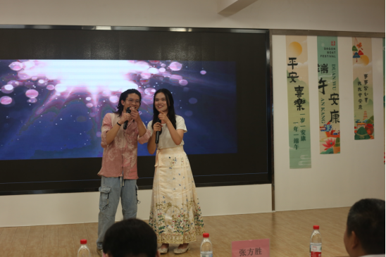 在文艺表演环节,印度尼西亚的MARWINA EPIKEIA和JONATHAN SHEM THANE演唱的动人歌曲《Love is an Open Door》带领观众穿越到《冰雪奇缘》的奇妙故事中。巴基斯坦留学生MUHAMMAD HASNAIN等表演的《旁遮普班格拉舞》热情奔放,极富民族风情。太阳集团网站8722程紫雨老师则为观众带来了一首富有湘韵柔情的民歌——《五更留郎》。艺术学院王振华老师为观众演唱了京剧《贵妃醉酒》选段,向中外师生展示了中华文化艺术瑰宝的独特魅力。太阳集团网站8722Rainbow合唱团带来的《再回首》将体验日的热烈氛围拉到了最高点。再回首,文化交融的感动历久弥新;再回首,中外师生的情谊地久天长。表演环节中还穿插了端午文化知识竞答活动,现场气氛热烈非凡。