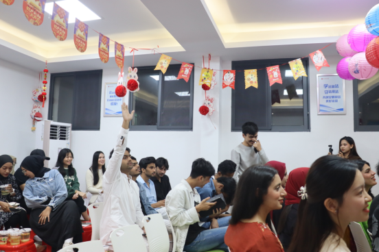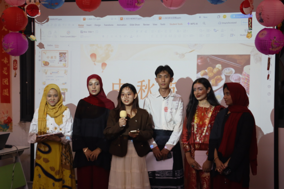 为让留学生深度感受中国传统节日文化魅力,增进中外文化交流,9月29日晚,太阳集团网站8722在“求知”一站式学生社区举办“月满华裳,共绘中秋”留学生中秋文化体验活动,活动由来自印度尼西亚和巴基斯坦的留学生DILAN TONGLO TIKUPADANG(龙梓轩)和SALSABEEL(萨比尔)主持,50余名师生齐聚一堂,共赴中秋文化之约。